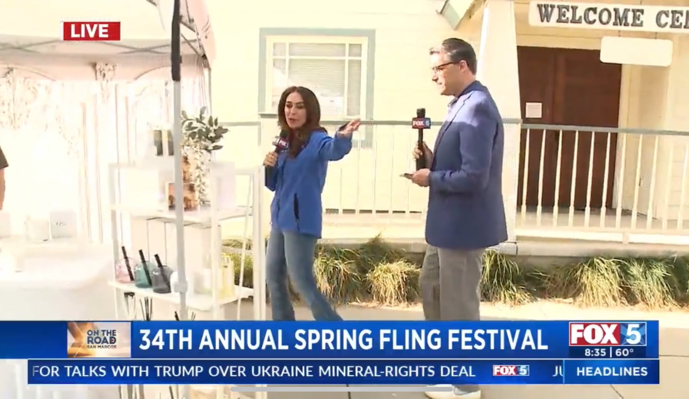 Fox 5 in San Diego featured the brand as part of the "on th road" segment to promote the city of San Marcos as well as the Spring Fling street faire event. Special thank you to Kennedy Faires for the collaboration.